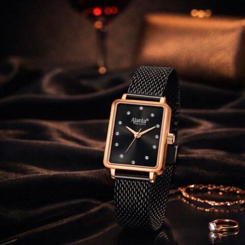 Ajanta Black Dial Mesh Strap Watch | AWC128ESL/4