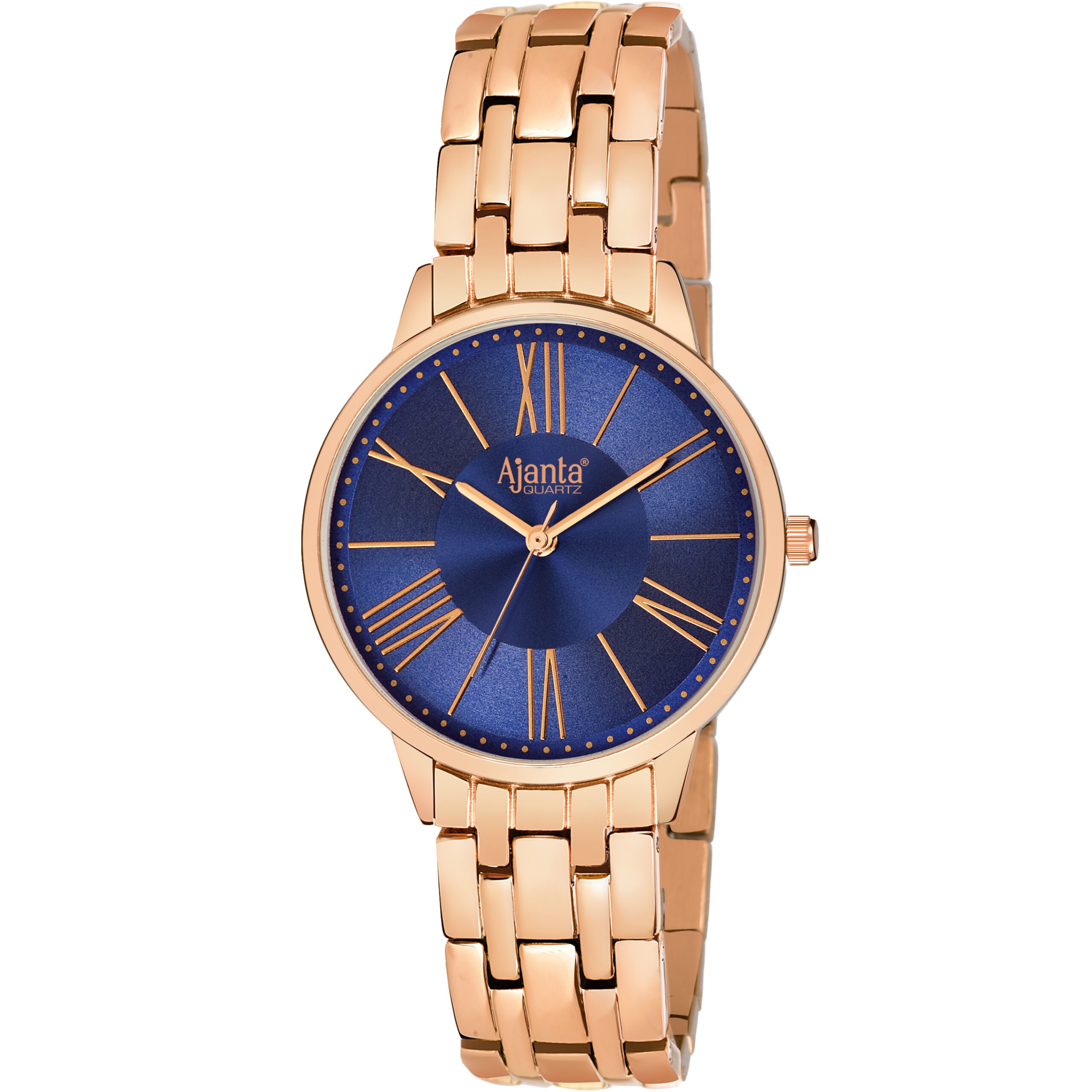 Crafted with a polished round stainless steel case, this 10mm thick timepiece pairs a rich blue dial with a refined rosegold strap. Its streamlined build and thoughtful details make it an effortless addition to both work and weekend wear.
