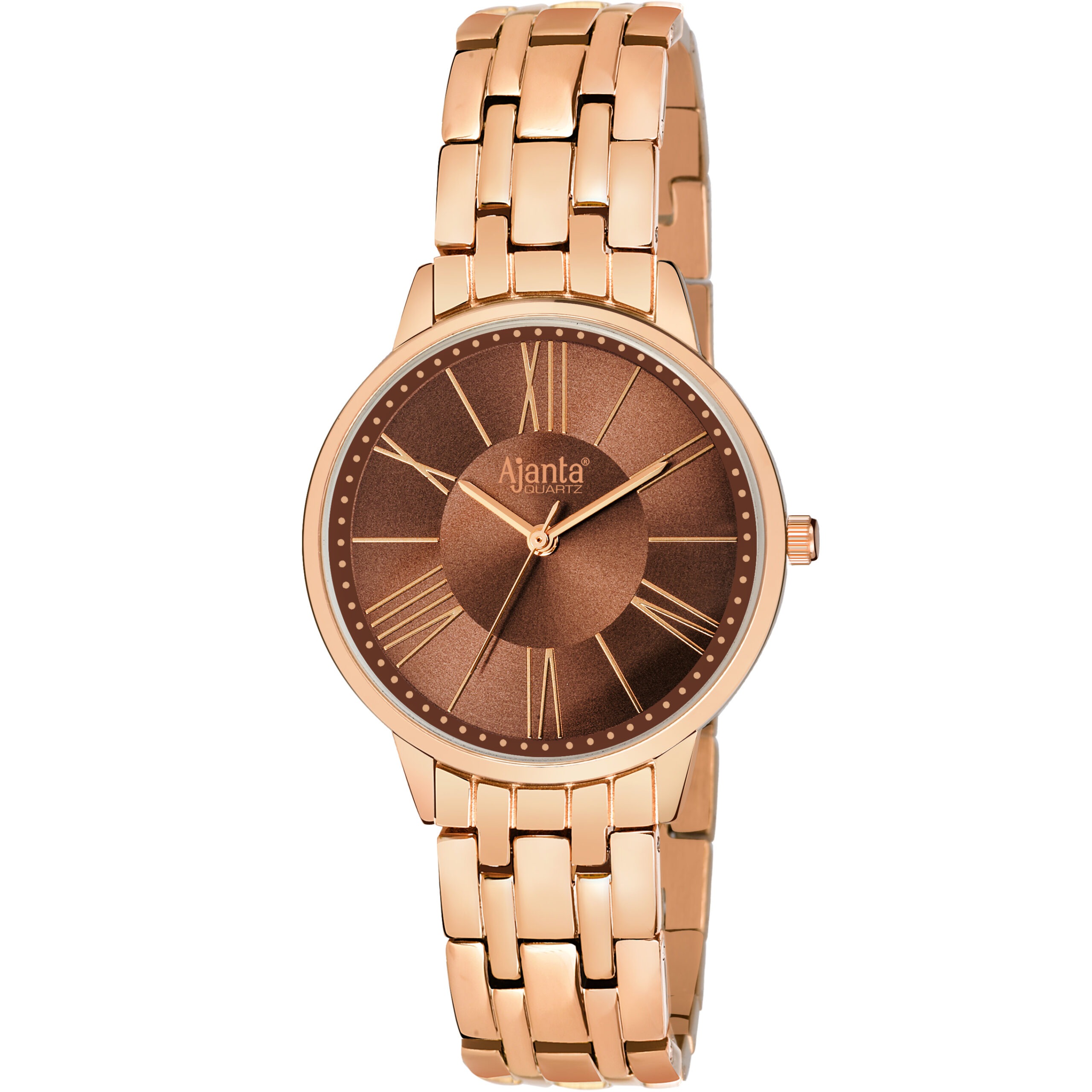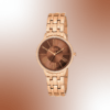 A brown dial paired with a sleek rosegold stainless steel strap for a sophisticated everyday look.