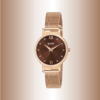 This round dial wristwatch combines reliable SONY battery performance with a rosegold stainless steel strap and brown dial. Designed without a bezel, its clean construction and stainless steel case make it a refined addition to everyday style.