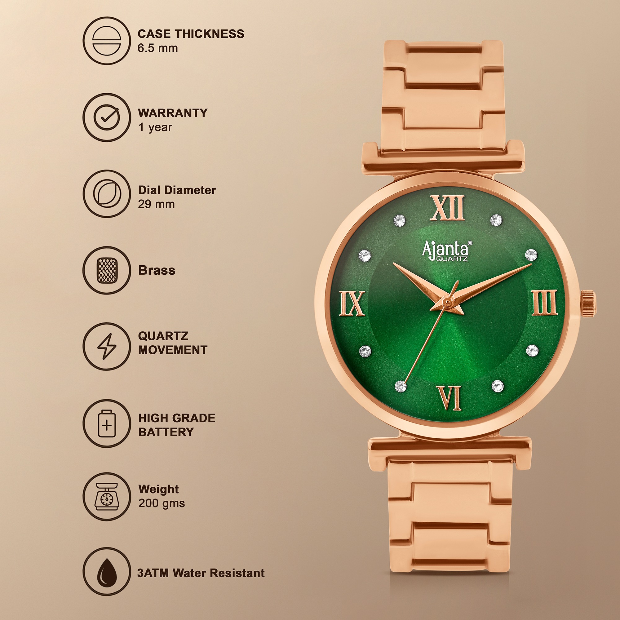 This grey dial and gold strap watch from the Style that Never Fades series is built for clean contrast and lasting use. With a bezel-free round dial and SONY battery support, it keeps things practical while making a statement.