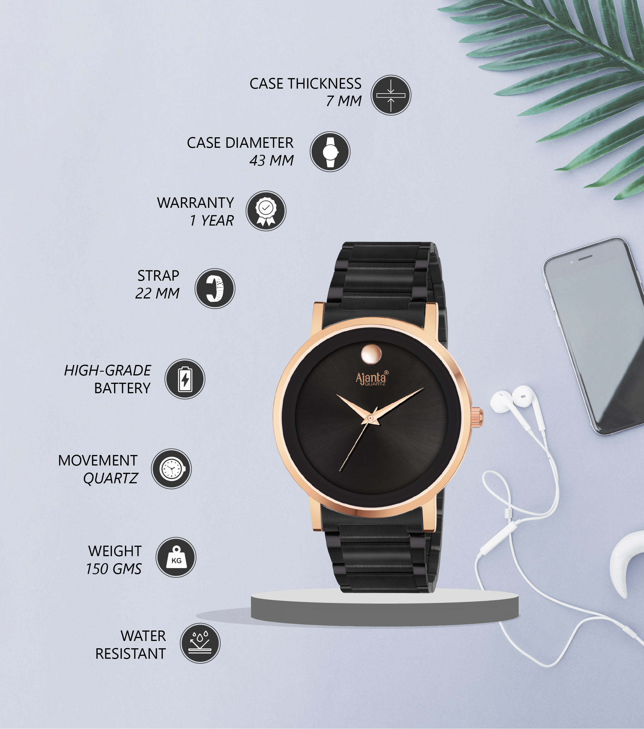 From the Modern Precision collection, the Kordell men’s watch features a bold black dial paired with a sleek black metal strap. Designed for everyday sophistication, it blends clean analog display with Japanese quartz movement. Its balanced weight and 3 ATM water resistance make it ideal for regular wear with understated confidence.