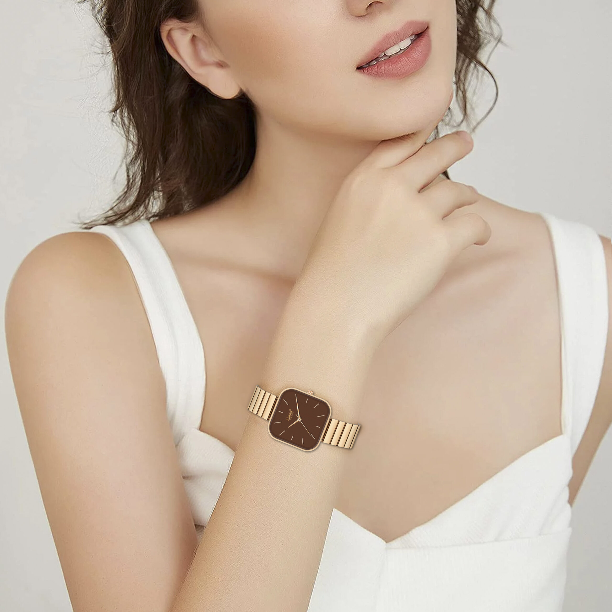 A square-dial watch with a minimalist brown design, perfect for everyday style.