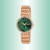 The Ajanta AWC125-3 from the La Luna Collection features a soothing green dial set in a 35mm round case with a crystal-studded bezel. Designed with a metallic finish and minimalist markers, it pairs effortlessly with its detailed link bracelet—perfect for daily wear with a refined touch.