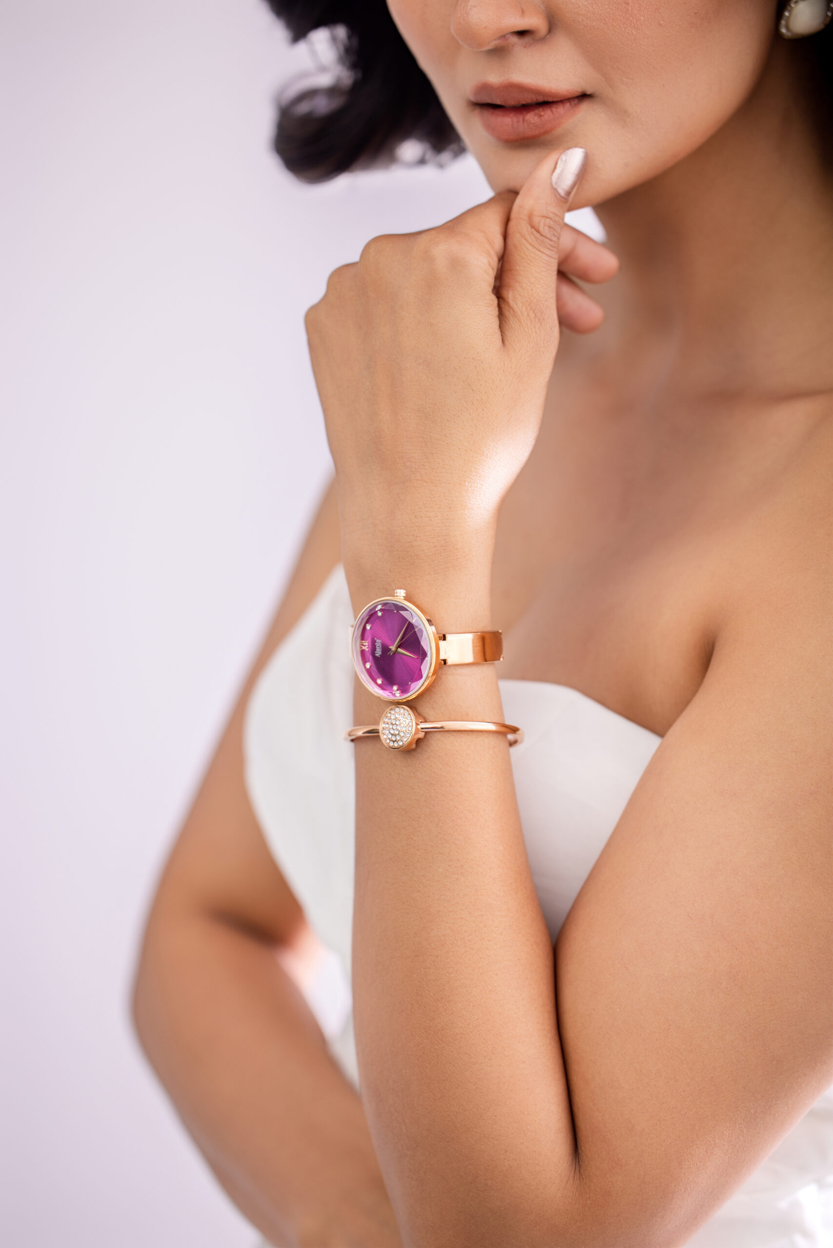 Part of Ajanta’s La Luna Collection, the AWC126-4 is designed to bring effortless polish to your wardrobe. The 35mm round case with a crystal-studded bezel frames a rich purple dial with minimalist markers. Finished with a rose gold-tone sculpted bracelet, this piece is a go-to for dressing up your everyday look. Reliable quartz movement ensures it keeps up with you, day after day.