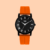 The AWC131-4 from the Nova Series features a sleek 41mm round case and a classic Roman numerals dial design. Paired with a bold tan orange silicone strap, it merges comfort with a sporty edge. This model exemplifies the balance between simplicity and standout styling.