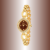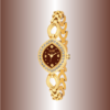 This sophisticated timepiece features a 30 x 20mm oval case with a maroon dial, stone-studded bezel, and a minimalist floral marker design. Paired with an elegant rose gold metal strap, this watch combines ornamental charm and reliable functionality.