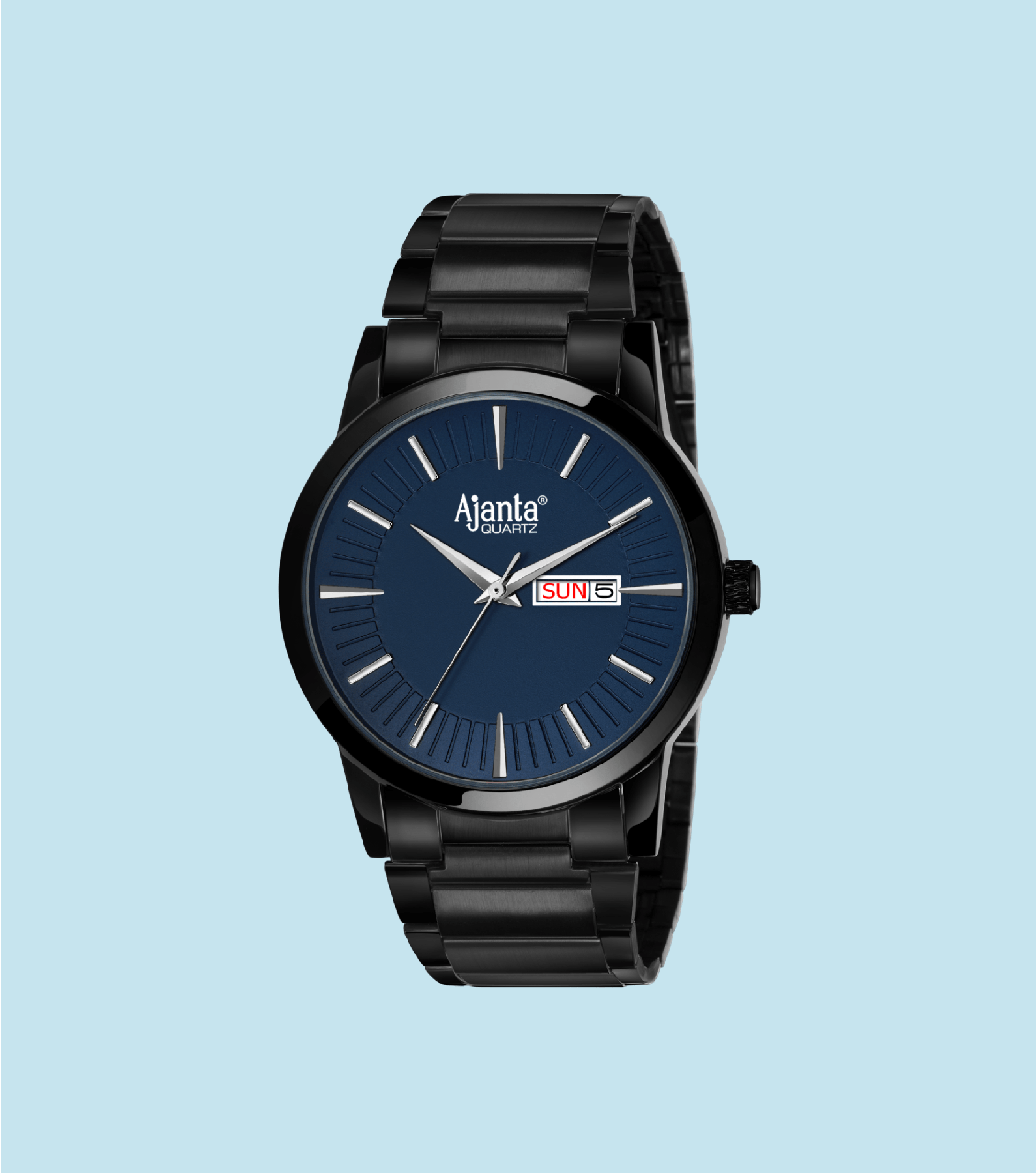 This Zorren edition features a bold blue dial paired with a black stainless steel strap for striking contrast. Designed with a bezel-free face and powered by a SONY battery, it also includes a day–date function within a solid 12 mm case.