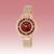 This Calyse model from A Whisper of Elegance stands out with its maroon dial and polished gold stainless steel strap. Crafted for those who prefer distinction in subtle forms, it features a bezel-free round face and SONY-powered movement inside a sleek 7 cm case.