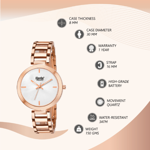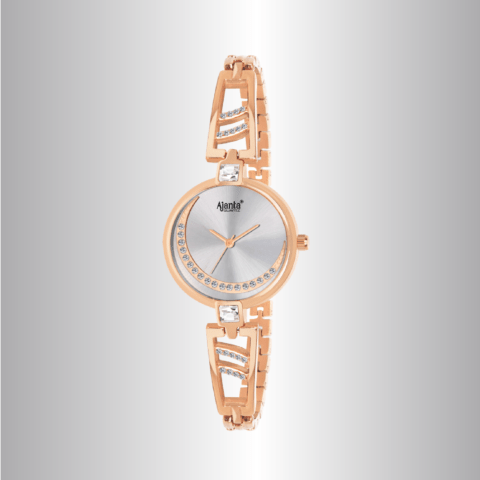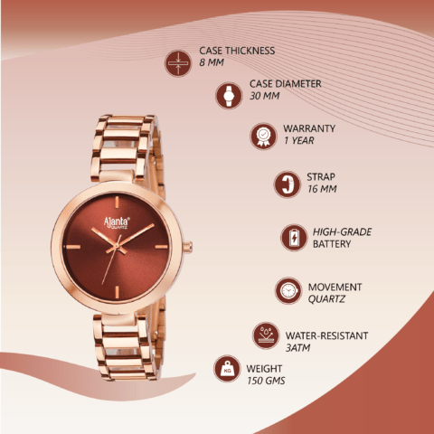 Ajanta Quartz Elegant Rose Gold Analog Metal Strap Watch With Brown Dial AWC116ESL/3
